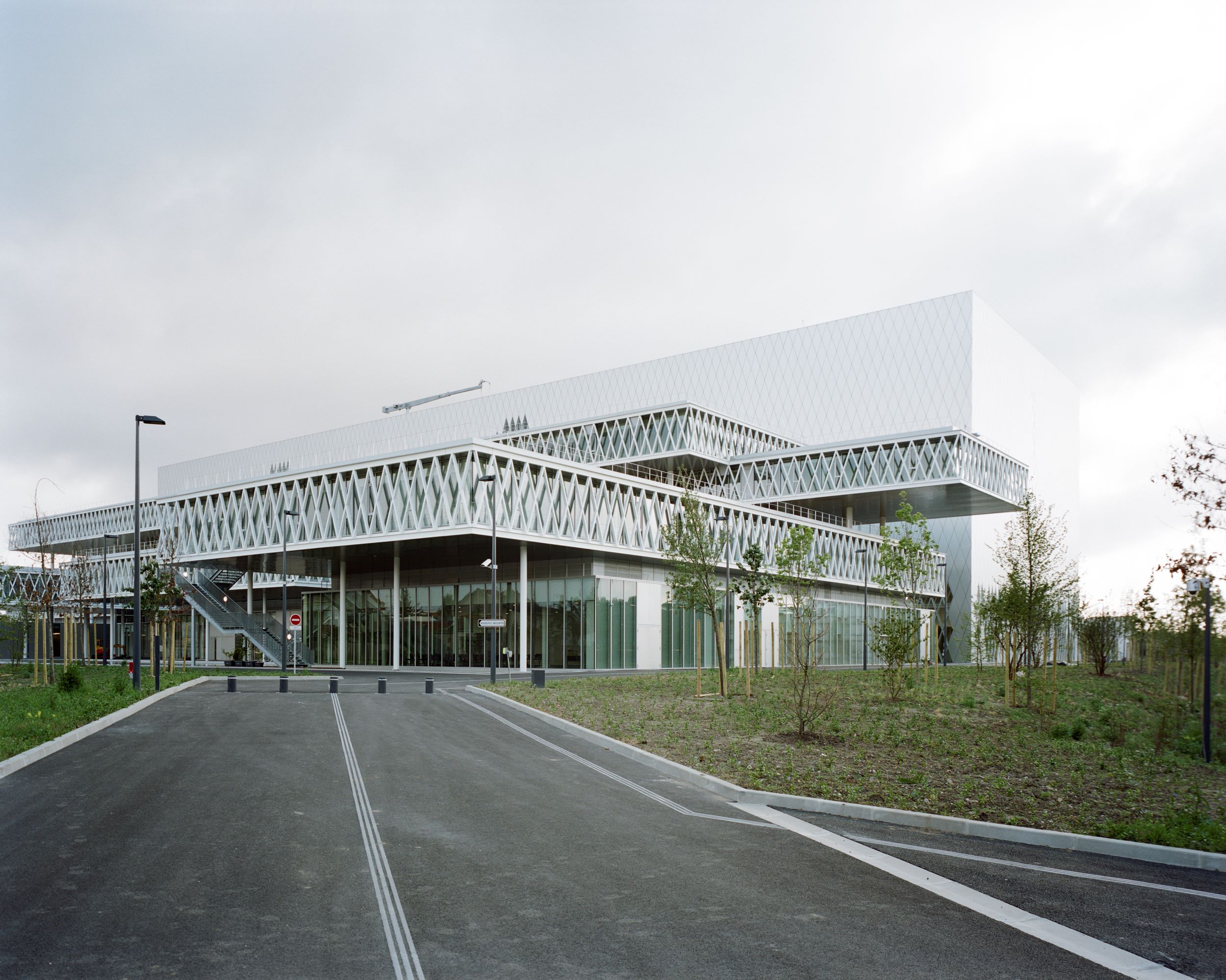 Un bâtiment d’archives de cette ampleur, dédié à 80% à une fonction de conservation (les archives de l’Etat depuis 1790), est par nature opaque, dense, de taille imposante (Immeuble de grande hauteur IGH : 38,50m de hauteur x 162,80m de longueur x 47,40m de largeur), et d’usage pérenne. En même temps, l’objectif démocratique impose qu’il soit d’accès facile, accueillant. Le projet de Massimiliano Fuksas travaille sur ces deux polarités : le bloc monolithe, bâtiment coffre orienté à l’est sur le grand paysage des Tartres, vient en contraste avec les satellites de verre ouverts sur des bassins qui reflètent la lumière changeante. Installé dans une permanence, le bâtiment s’inscrit en même temps dans un paysage d’Ile-de-France, où se mêlent les traces agraires et l’urbanisation la plus radicale. Le paysage alentour a été élaboré par Florence Mercier, associé à Massimiliano Fuksas. Ce travail a été mené en liaison avec les équipes de Plaine Commune et du Conseil général chargées du traitement paysager de la RD 28 et de l’aménagement urbain des Tartres.