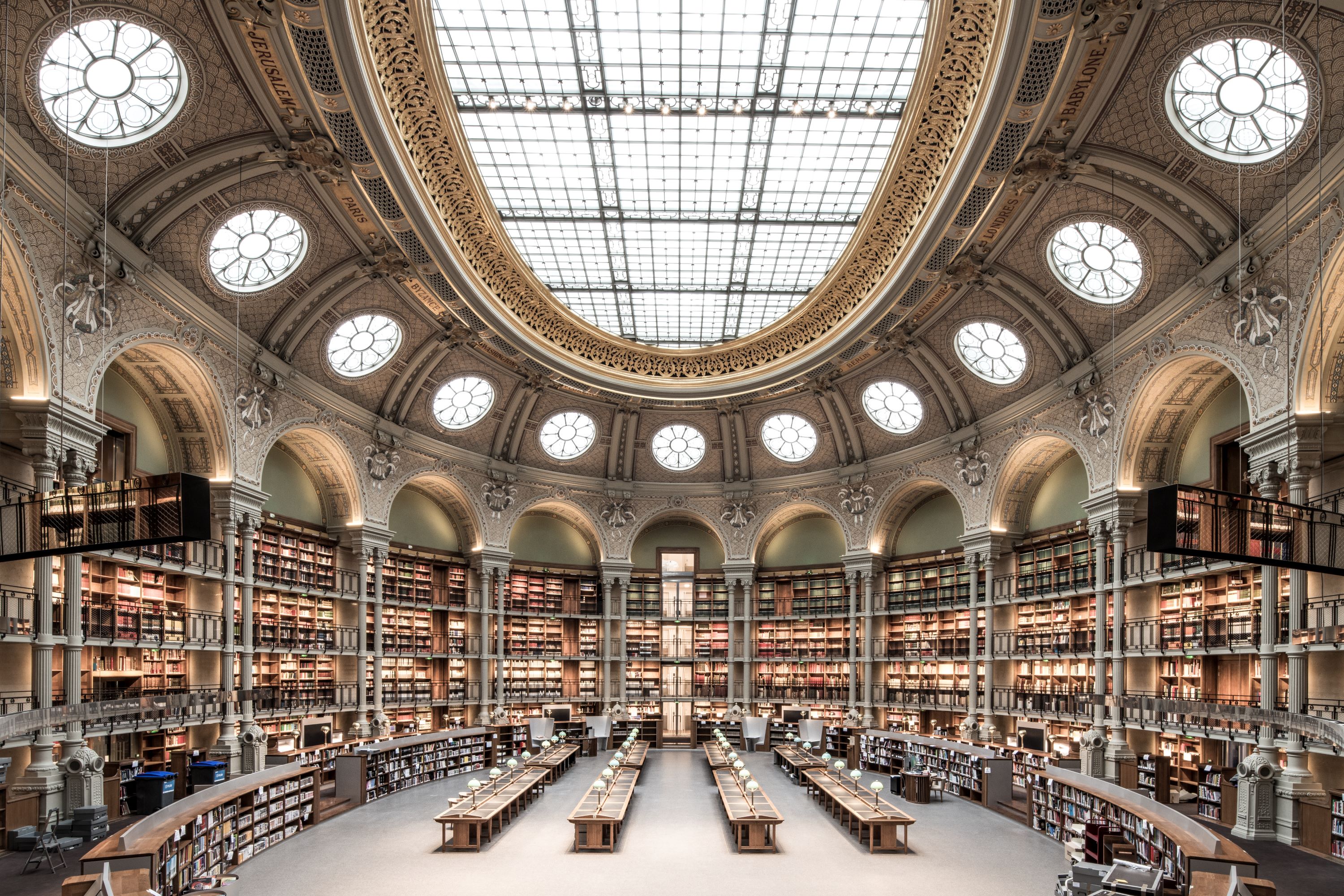 La rénovation du site Richelieu (60 000 m2 au cœur de Paris), confiée aux architectes Virginie Brégal et Bruno Gaudin s’opére en deux phases. Dès la fin de l’année 2016, les espaces rénovés de la phase 1 (partie ouest du bâtiment) ont rouvert au public, consacrant la création d’un lieu unique réunissant trois bibliothèques d’institutions majeures dédiées à l’histoire, au patrimoine et à l’histoire des arts : la Bibliothèque nationale de France, l’Institut national d’histoire de l’art et l’Ecole nationale des chartes.