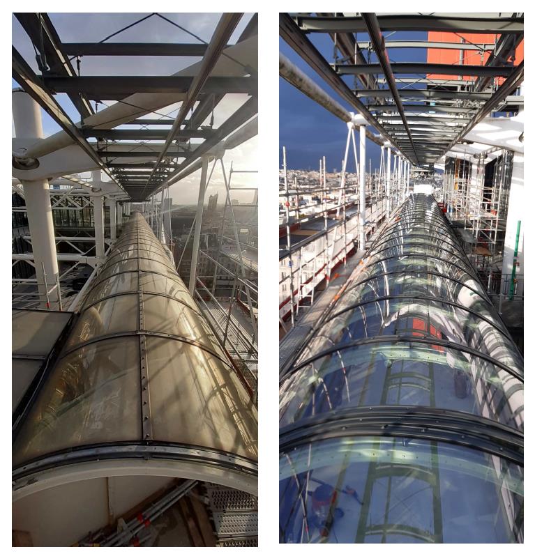 - 4e phase : remplacement des vitrages et escaliers mécanique en partie haute et finalisation des travaux de coursives.