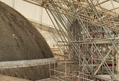 Ce chantier de restauration de la Petite Ecurie du Roy, abritant l’Ecole nationale supérieure d’architecture de Versailles s’est organisé parallèlement à la deuxième édition de la Biennale d’architecture et de paysage d’Île-de-France (du 14 mai au 13 juillet 2022). Les opérations de dépose des verrières et couvertures débutées au printemps s’achèvent. L’isolation des combles a débuté cet été. Les installations de chantier vont désormais se déployer dans la cour intérieure.