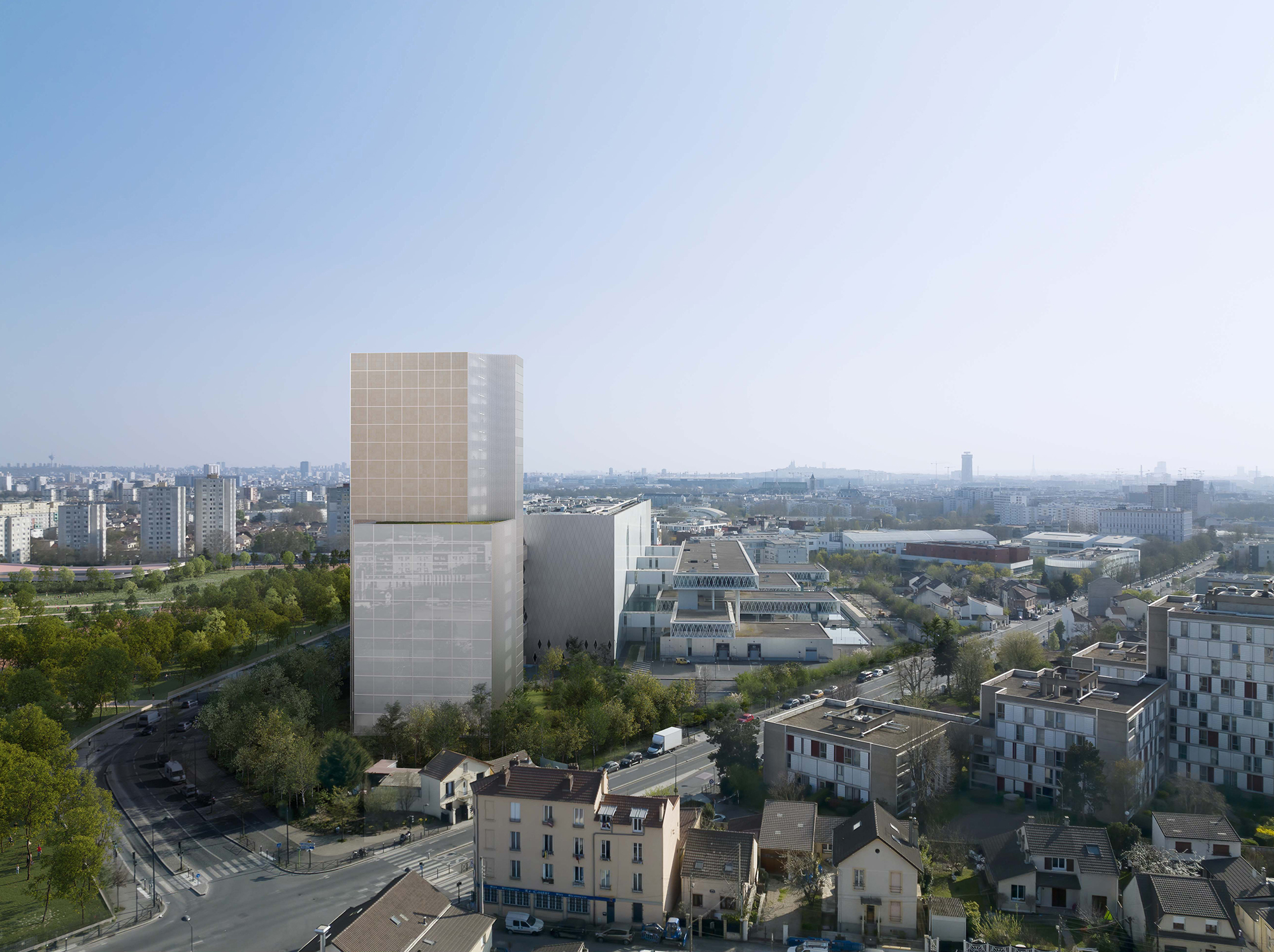 Au-delà du signal à l’échelle urbaine que propose le projet de l’agence l’AUC, les membres du jury ont été sensibles à la dimension environnementale intégrée aux procédés constructifs et au souci de libérer l’emprise au sol pour préserver les espaces verts, dans la continuité des projets de valorisation des acteurs du territoire dans la ZAC des Tartres.