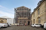 A ce jour les opérations de restauration et d’isolation des couvertures de la partie de la maréchalerie sont terminées et les travaux sur les ailes jouxtant les cours de Paris et des Fontaines sont en cours. A l’intérieur du bâtiment la pose des gaines et réseaux techniques est terminée et le nouveau réseau de chauffage déjà en fonctionnement.