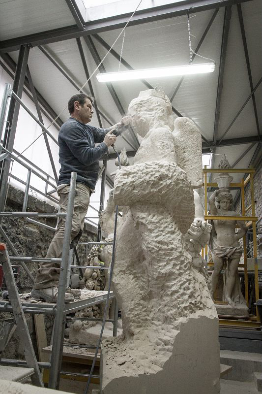 Après validation par l’architecte en chef des monuments historiques et la DRAC, responsable du contrôle scientifique et technique, le modèle de plâtre sera de nouveau moulé pour être réalisé en pierre