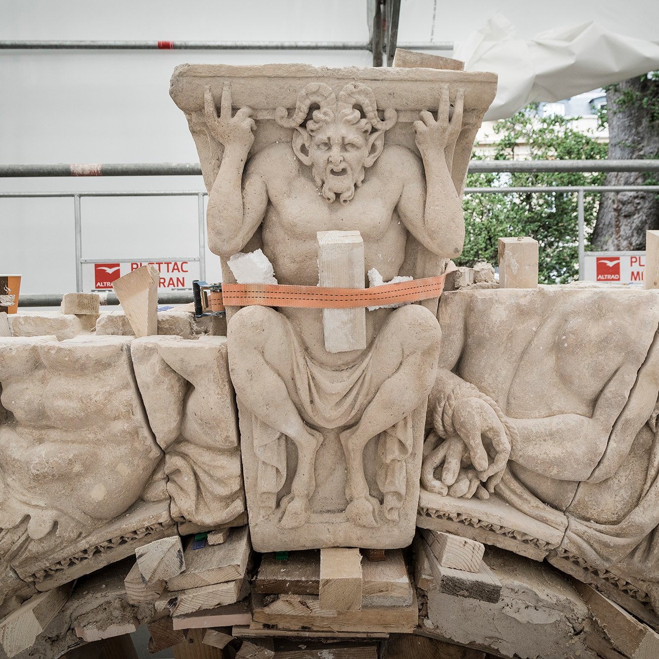 La restauration du tympan est, du musée d’Orsay, réparations conservatoires.